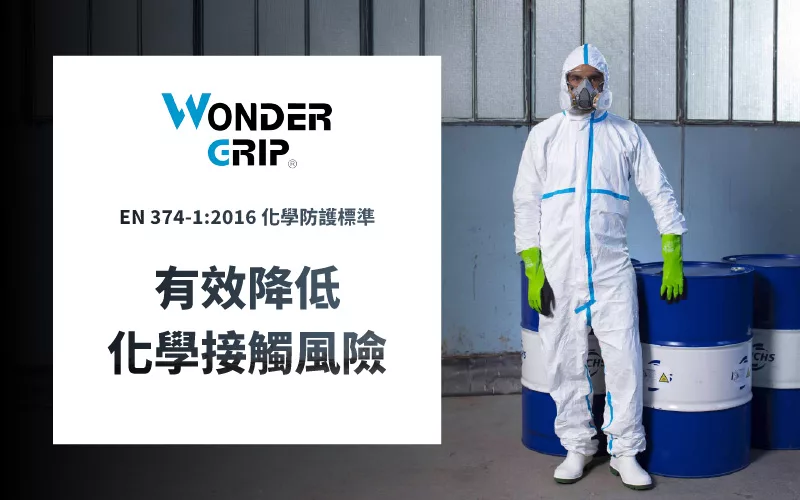 在涉及 化學品接觸、高風險化學作業或實驗室操作 的環境中,選用具備 化學防護能力的 WonderGrip