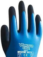 WonderGrip 手套規格一覽表 \ 快速查看多項指標 / 圖片 / 型號 防水性 防寒等級 規範介紹 隔熱等級 規範介紹 手套材質 材質介紹 防切割等級 規範介紹 供應尺寸 對照總表 適用產業 完整說明 OP-100B OPTY™ 經濟型防滑耐磨工作手套 ✗ ✗ ✗ 滌綸 1級 SMLXL 電子電工製造業建築業設備操作裝配維修倉儲物流 OP-105B OPTY™ 經濟型防滑耐磨工作手套 ✗ ✗ ✗ 滌綸 1級 SMLXL 電子電工製造業建築業設備操作裝配維修倉儲物流 OP-105W OPTY™ 經濟型防滑耐磨工作手套 ✗ ✗ ✗ 滌綸 1級 SMLXL 電子電工製造業建築業設備操作裝配維修倉儲物流 OP-170E OPTY™ 防滑耐磨型PU作業手套 ✗ ✗ ✗ 滌綸 1級 ML 電子電工製造業建築業設備操作裝配維修倉儲物流 OP-280 OPTY™ 經濟輕薄透氣防滑工作手套 ✗ ✗ ✗ 天然乳膠、滌綸 1級 ML 電子電工製造業建築業設備操作裝配維修倉儲物流 OP-358 OPTY™ 15mil 丁腈耐溶劑作業手套 ✓ ✗ ✗ 丁腈橡膠、植絨棉 ✗ ML 工業製程作業噴塗作業消殺作業製造 OP-775 OPTY™ 經濟型透氣C級防割工作手套 ✗ ✗ ✗ PU、HPPE、礦物纖維 C級 MLXL 機械裝配及維修製造業回收業建築業 OP-785 OPTY™ 經濟型透氣重型D級防割工作手套 ✗ ✗ ✗ PU、HPPE、礦物纖維 D級 MLXL 機械及刀具操作金屬及玻璃加工切割作業汽車製造 WG-1855HY U-FEEL 可觸碰螢幕耐磨防滑工作手套 ✗ ✗ ✗ 萊卡纖維、滌綸 1級 M 觸屏作業智能製造精細加工裝配維修家居園藝 WG-1857 NEO 18針萊卡舒適耐磨手套 ✗ ✗ ✗ 丁腈橡膠、尼龍、氨綸 1級 MLXL 精細加工裝配維修汽車修護成品確認製造業 WG-310HOT COMFORT 經典通用乳膠防滑工作手套 ✗ ✗ ✗ 天然乳膠、尼龍 1級 XL 倉儲物流建築家裝公共服務家居園藝 WG-310RT COMFORT 升級可觸屏乳膠防滑工作手套 ✗ ✗ ✗ 天然乳膠、尼龍 1級 SML 觸屏作業倉儲物流建築家裝公共服務家居園藝 WG-318 AQUA 防水耐磨工作手套 ✓ ✗ ✗ 天然乳膠、尼龍 1級 SMLXL 清潔保養垃圾回收濕滑作業農業 WG-333 ROCK & STONE 初級防寒隔熱耐磨工作手套 ✗ 1級 2級 天然乳膠、滌綸 B級 SMLXL 物流搬運建築工地垃圾回收帆船航海林業木業 WG-338 THERMO PLUS 乳膠防寒防水防滑工作手套 ✓ 2級 2級 天然乳膠、腈綸、滌綸 2級 SMLXL 冬季戶外倉儲冷鏈冷鏈相關 WG-338W THERMO PLUS DOUBLE 雙層乳膠防寒防水防滑工作手套 ✓ 2級 ✗ 天然乳膠、腈綸、滌綸 2級 MLXL 冬季戶外倉儲冷鏈低溫濕滑作業 WG-422 BEE-SMART 蜂巢舒適耐磨工作手套 ✗ ✗ 1級 天然乳膠、涤綸 1級 MLXL 家庭園藝成品確認建築家裝倉儲搬運 WG-502E FLEX 經典基礎耐磨手套 ✗ ✗ ✗ 丁腈橡膠、涤綸 1級 SMLXL 裝配維修汽車修護倉儲物流機械加工製造業 WG-522W BEE-TOUGH 蜂巢舒適耐磨工作手套 ✗ ✗ 1級 丁腈橡膠、滌綸 1級 MLXL 家居園藝精細加工裝配維修汽車修護製造業 WG-528L OIL GUARD 加長型防油防水耐磨工作手套 ✓ ✗ ✗ 丁腈橡膠、尼龍 1級 MLXL 機械加工裝配維修汽車修護零部件製造能源相關作業 WG-550 AIR LITE 輕薄透氣耐磨工作手套 ✗ ✗ ✗ 丁腈橡膠、尼龍、滌綸 1級 XL 家居園藝精細加工裝配維修汽車修護製造業 WG-718 DEXCUT® D級防油防水防割工作手套 ✓ ✗ ✗ 丁腈橡膠、Tsunooga™礦物纖維、氨綸 D級 MLXL 切割作業機械加工裝配維修能源相關作業切割風險環境 WG-757 CUT ARAMID 4級柔軟防割工作手套 ✗ ✗ ✗ 丁腈橡膠、氨綸礦物纖維 4級 MLLX 機械裝配及維修製造業回收業建築業 WG-777 CF DEXCUT® D級鋼絲防割工作手套 ✗ ✗ ✗ 丁腈橡膠、HPPE 鋼絲 D級 MLXL 機械及刀具操作金屬及玻璃加工切割作業汽車裝装配 WG-787 DEXCUT® D級防割工作手套 ✗ ✗ ✗ 丁腈橡膠、Tsunooga礦物纖維 D級 MLXL 機械及刀具操作金屬及玻璃加工切割作業汽車裝配建築業製造業 WonderGrip 選購常見問題 \ 還有疑問?這裡還有 / 表格中的「防水」是指整雙手套都可以浸在水裡嗎? 我們的防水塗層手套在手掌與手背部分皆有完整的防水塗層,能有效阻擋雨水、油污滲透。 注意: 手腕束口處(袖口)為彈性針織材質,並無防水功能。若您的工作需要將雙手「完全沒入」深水中超過手腕高度,水會從袖口處流進手套內。 如果我的工作環境只有少量潑水或油污,需要買到全防水等級嗎? 解釋掌面防水塗層通常已足夠應付一般油污或潑水,且保留手背透氣性會更舒適,適合長時間配戴。 「防寒等級」與「隔熱等級」的數字代表什麼意思?數字越大越好嗎? 這是基於 EN511 或 EN407 的標準測試。數字越高代表防護能力越強(例如耐受更低的溫度或接觸更高溫的物體而不受傷),等級 2 可短時間接觸約 250°C 熱源。 防寒手套戴起來會不會很厚重、不好活動? 靈活性會依防寒/隔熱等級提升變低,WonderGrip針對手型人體工學設計可以最大程度增加可操作性 「乳膠 (Latex)」和「丁腈 (Nitrile)」塗層有什麼不同?我該選哪種? 乳膠:抓地力強、柔軟、抗撕裂好(適合搬運、園藝)。丁腈:耐油性佳、耐磨、較不容易過敏(適合機械維修、油污環境)。 如果我對橡膠過敏,該參考哪一個欄位? 建議選擇丁腈材質 (Nitrile) 以降低乳膠蛋白過敏風險。 防切割等級 A1 到 F (或 1-5 級) 怎麼選?一般家用需要很高嗎? 低等級:一般搬運、組裝、園藝。中高等級:處理金屬薄板、玻璃、刀具操作。 防割不代表「割不破」,仍需避免故意切劃或在高速轉動機具下使用。