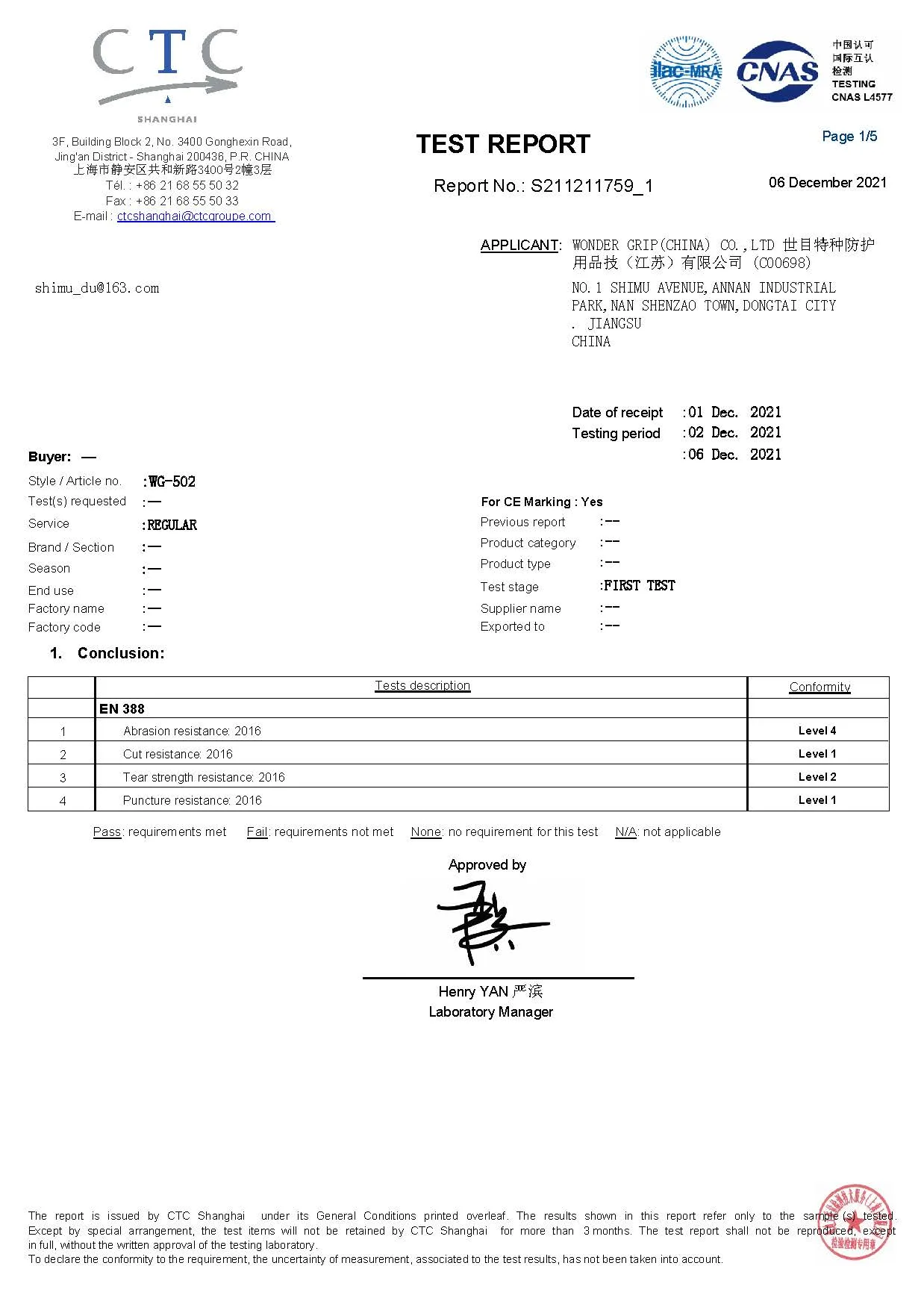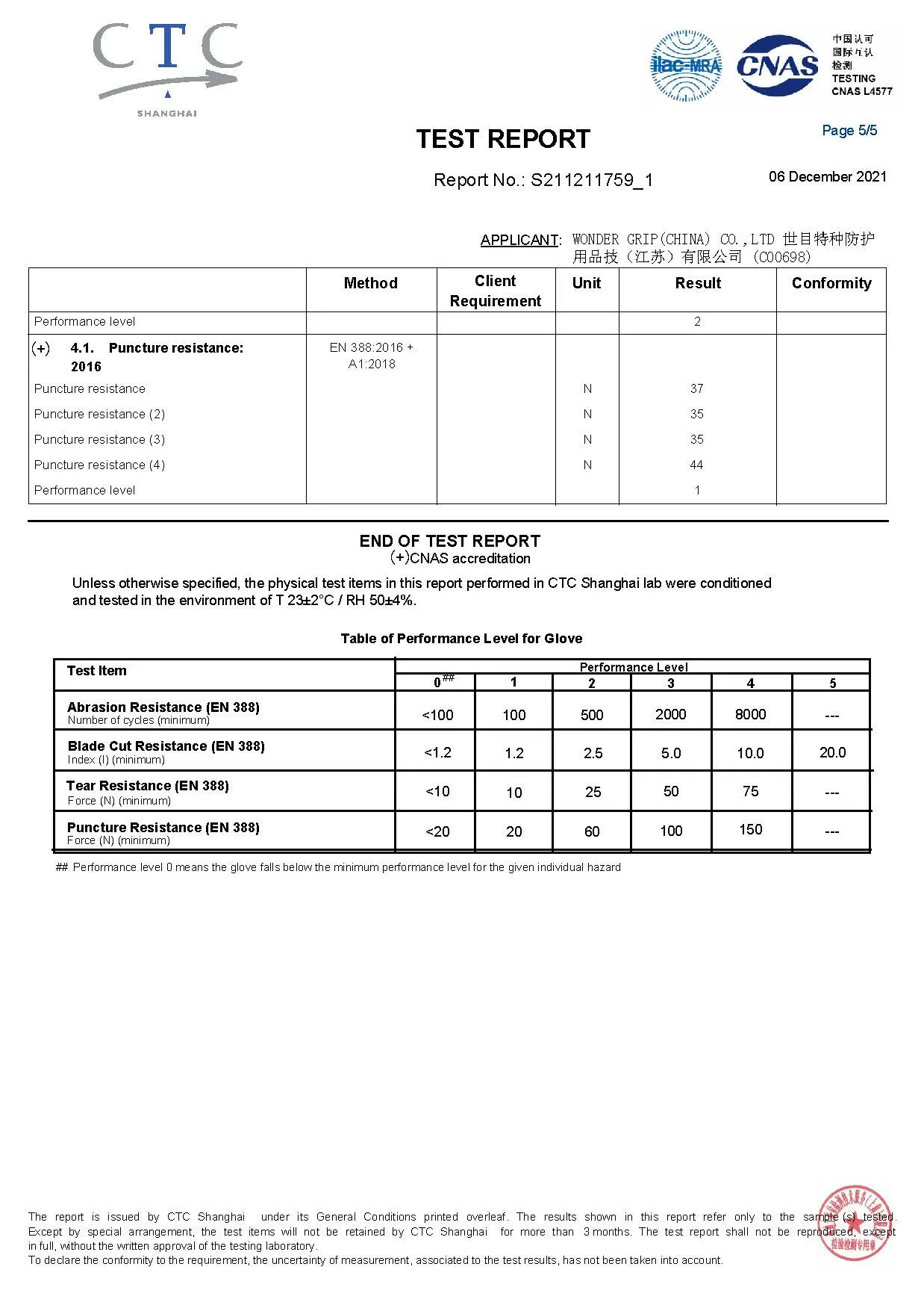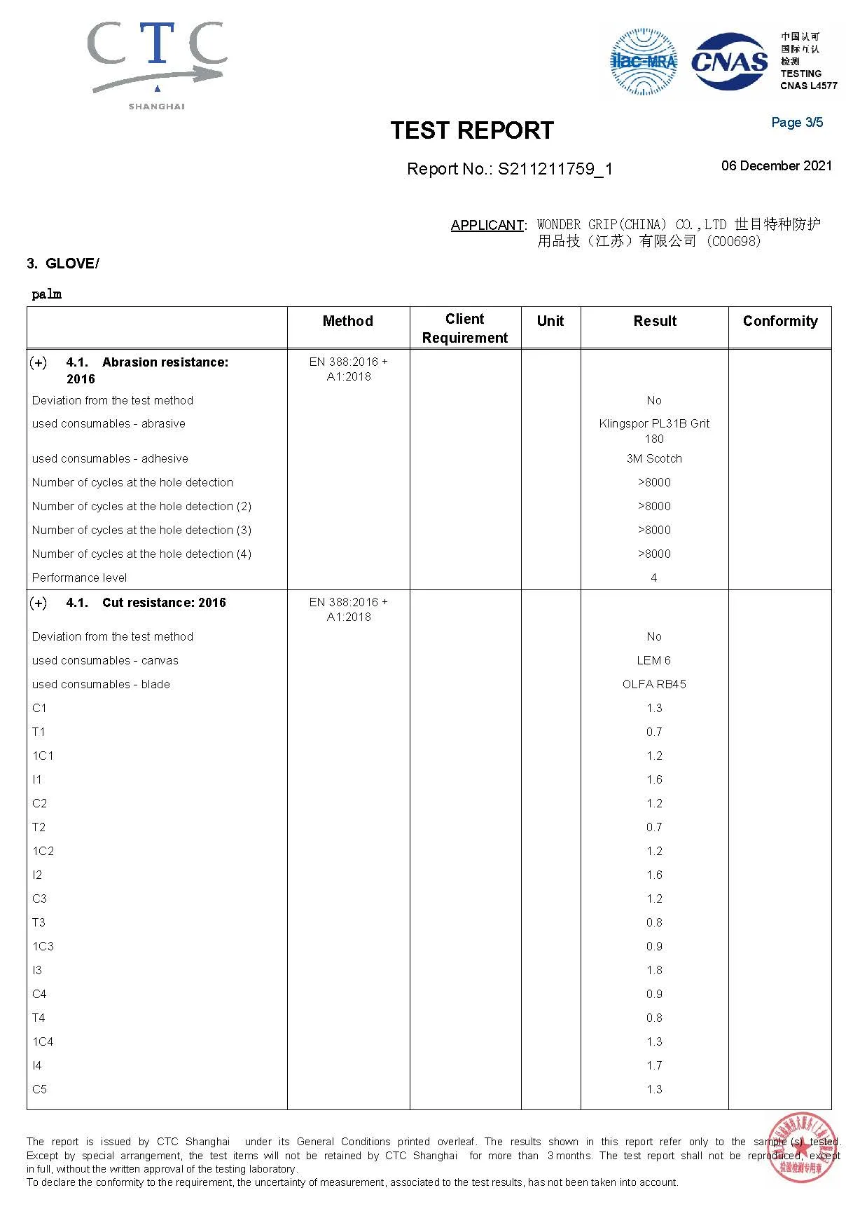 EN388認證:4121X、OEKO-TEX® 持續紡織和皮革生產驗證、CE歐盟合格認證、Cat.ll認證